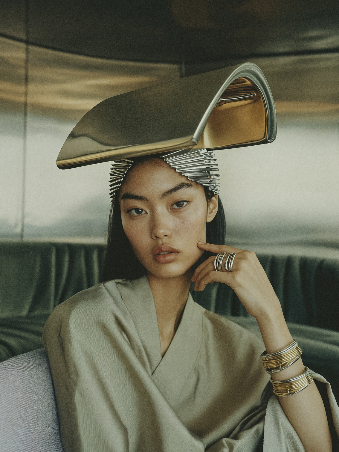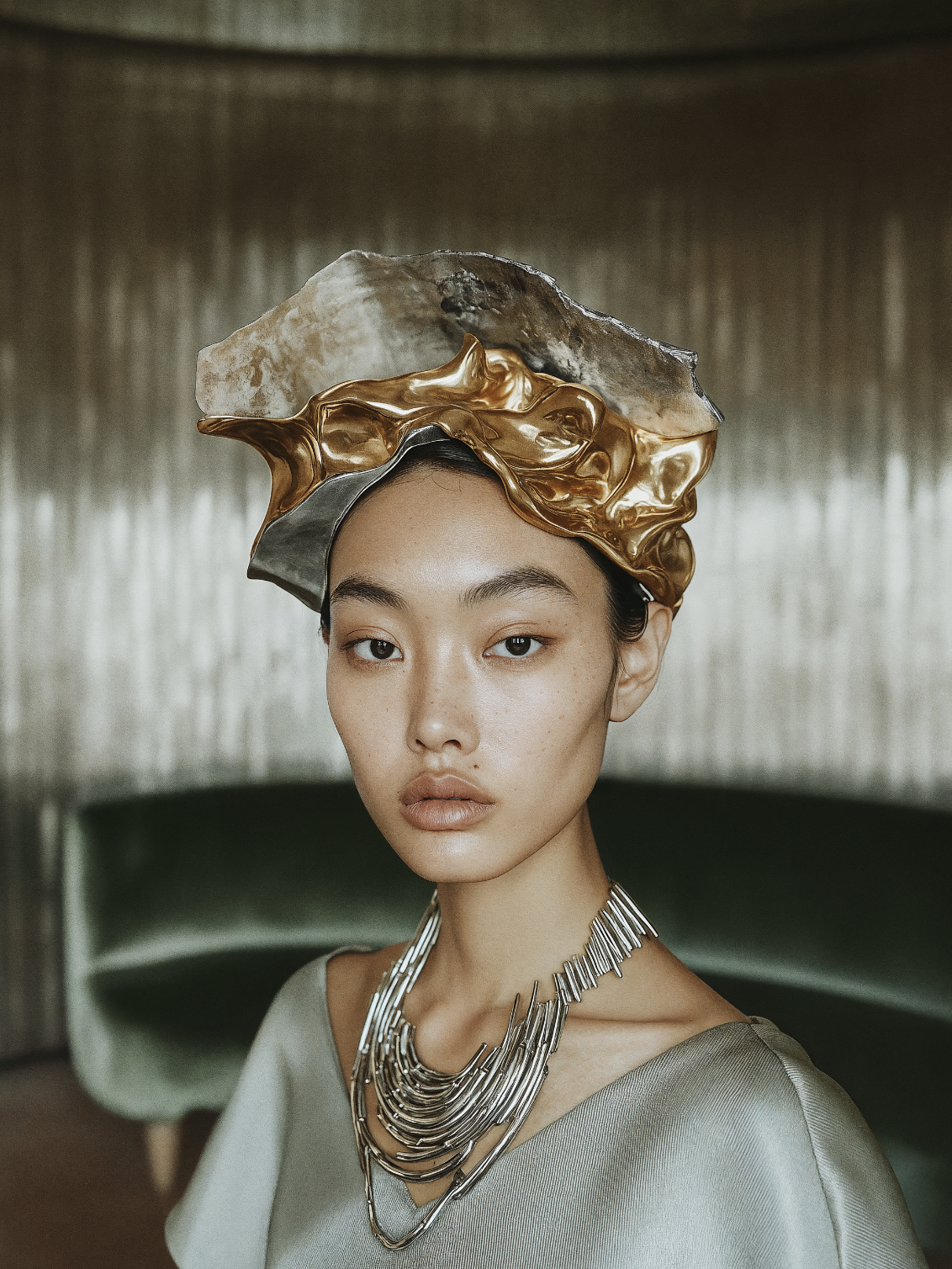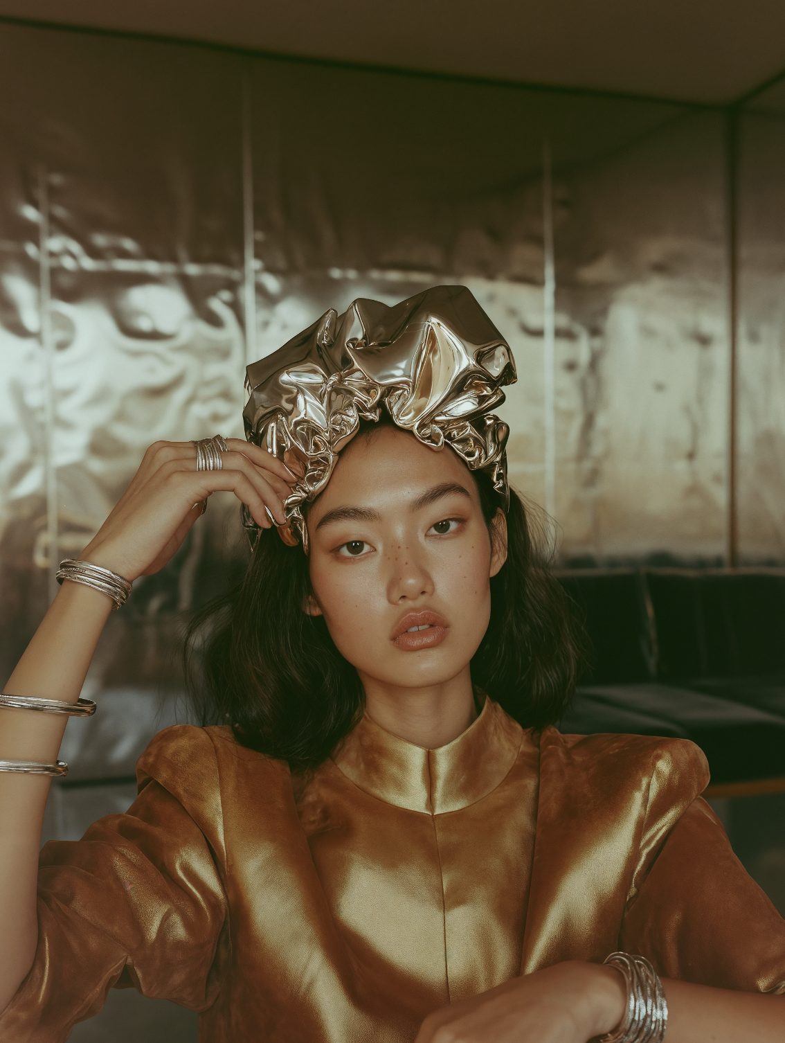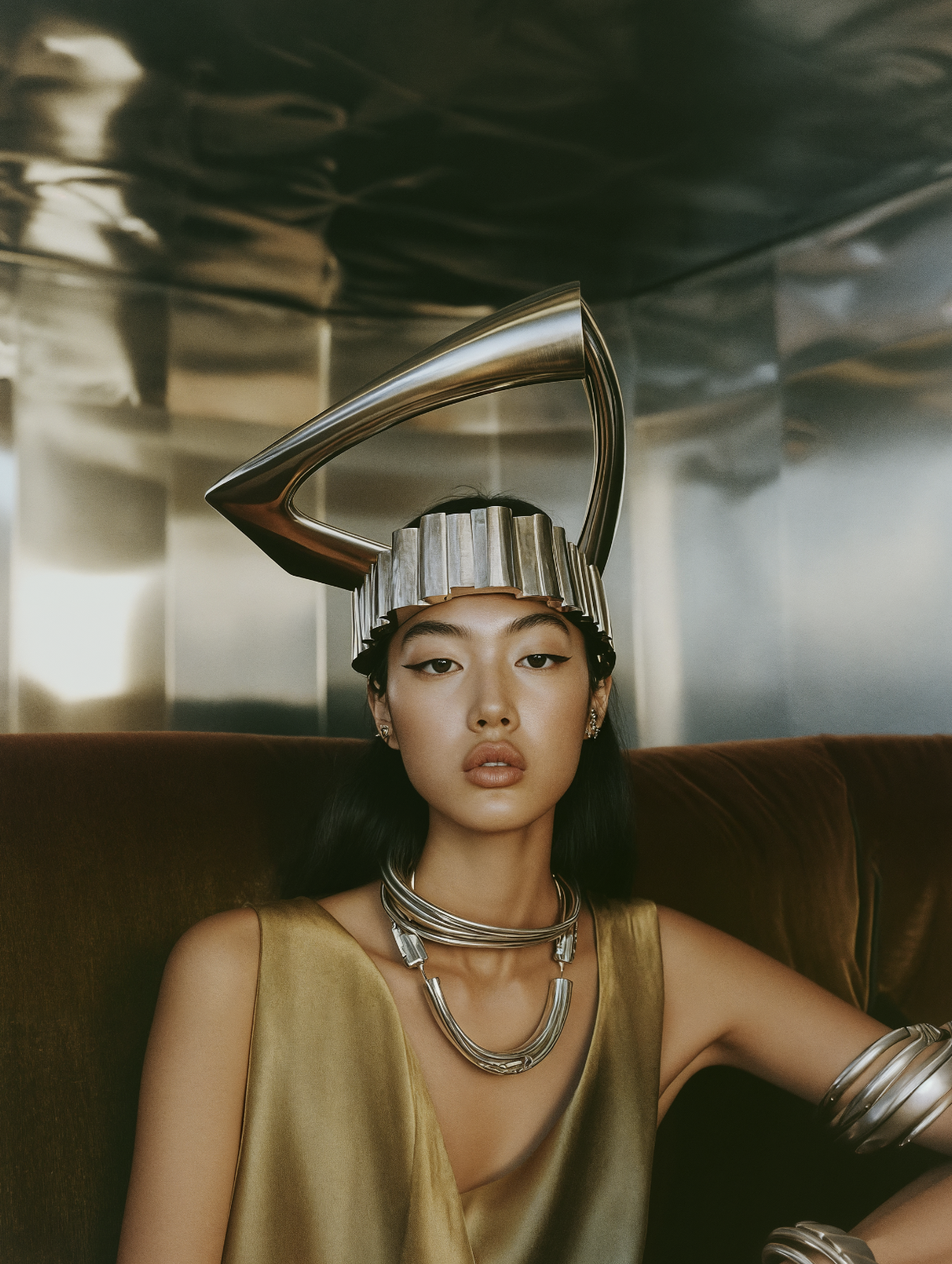 Crowned in gold and light, each headpiece is a sacred symbol worn to guide their tribes through modern sun rituals.